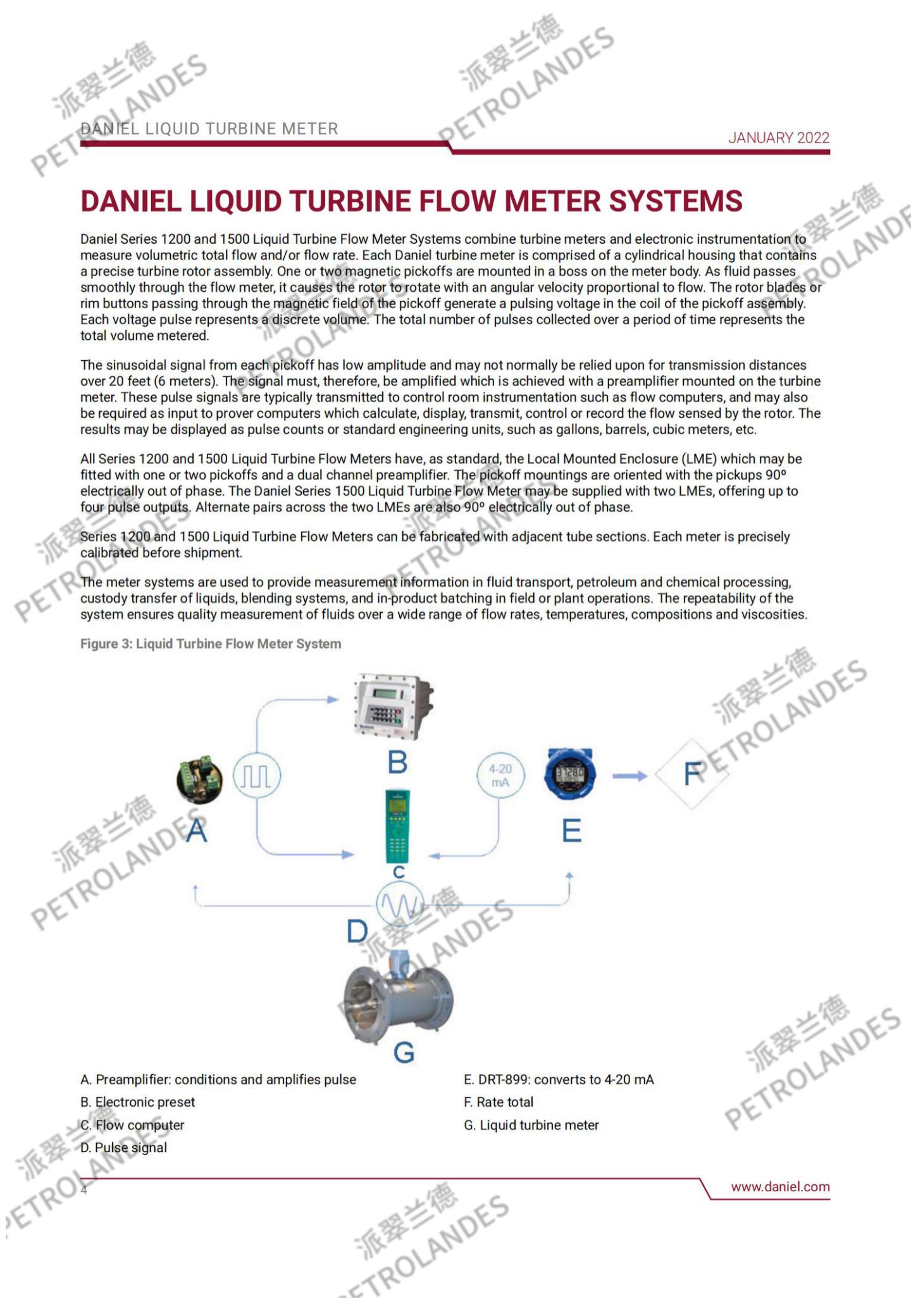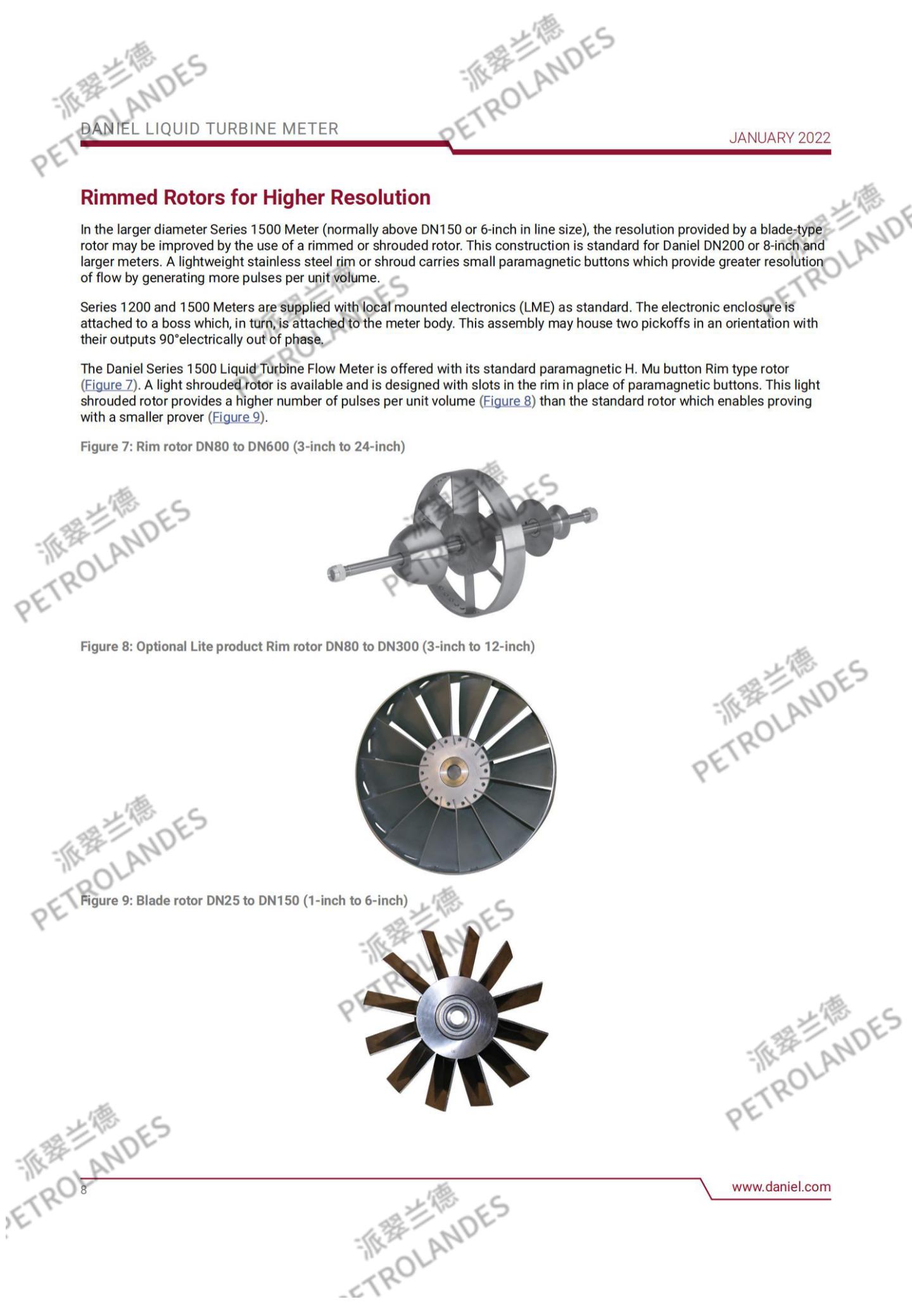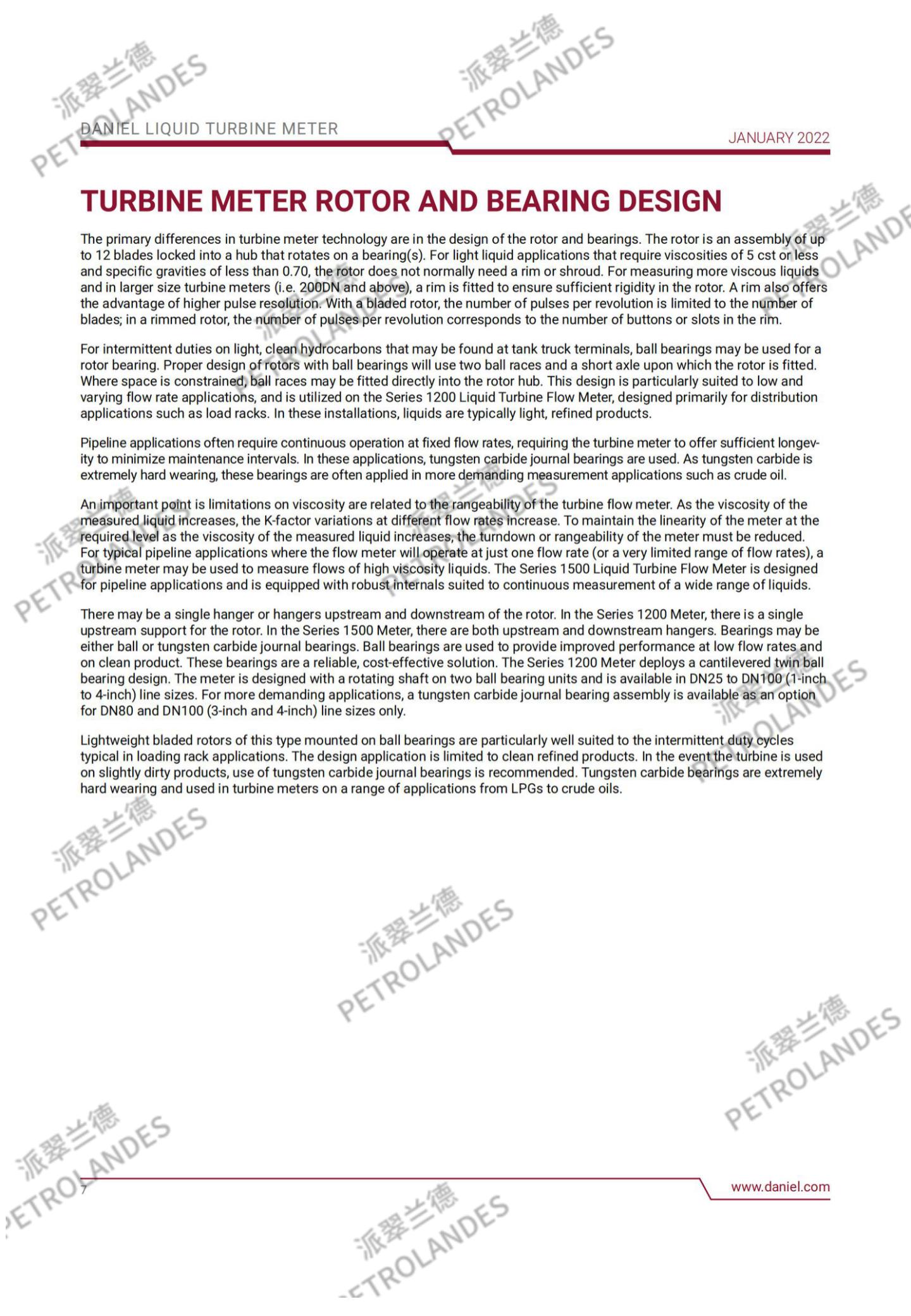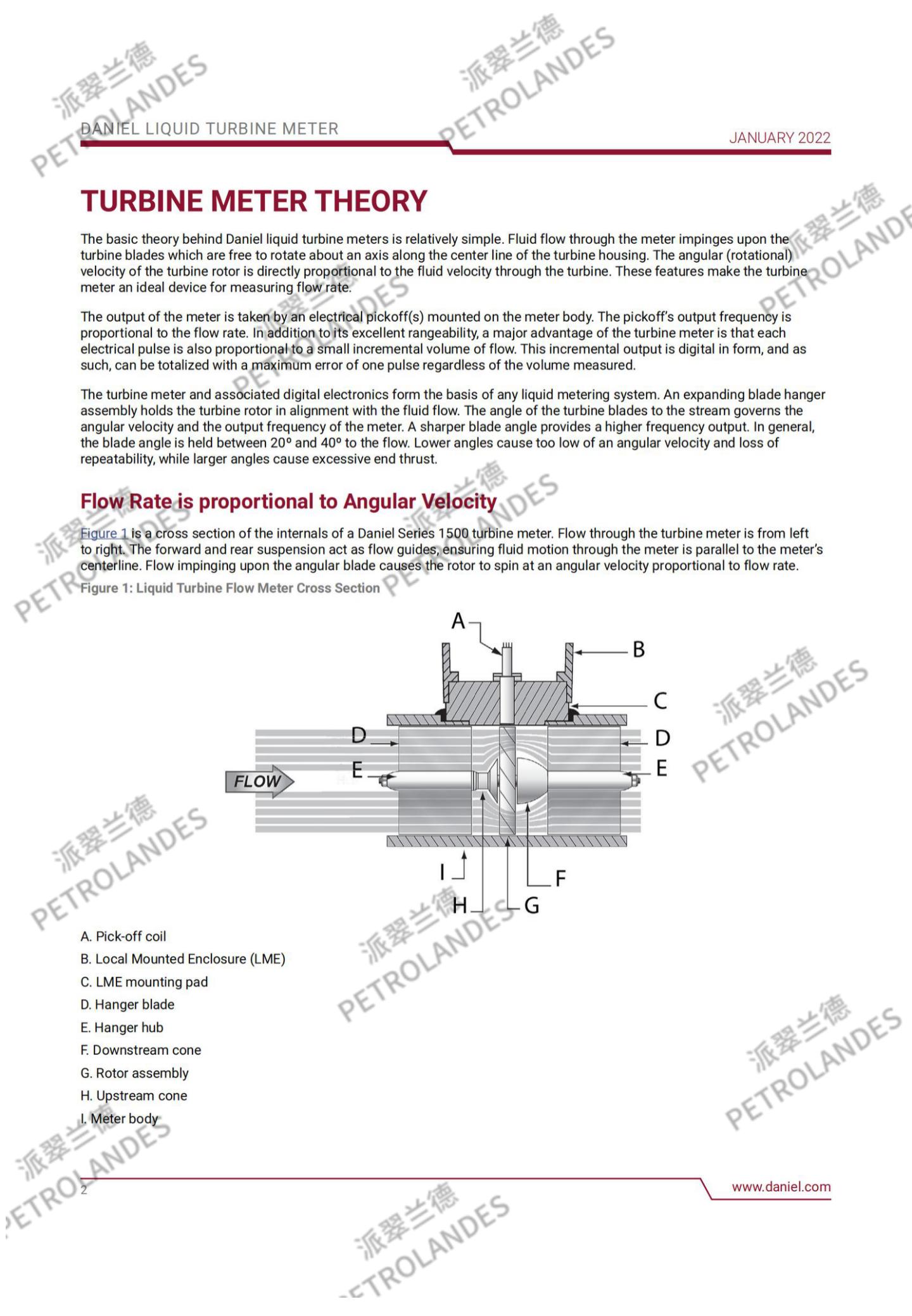 丹尼尔液体涡轮表背后的基本理论相对简单。流经流量计的流体撞击在涡轮叶片上,涡轮叶片可以沿涡轮壳体中心线的轴线自由旋转。