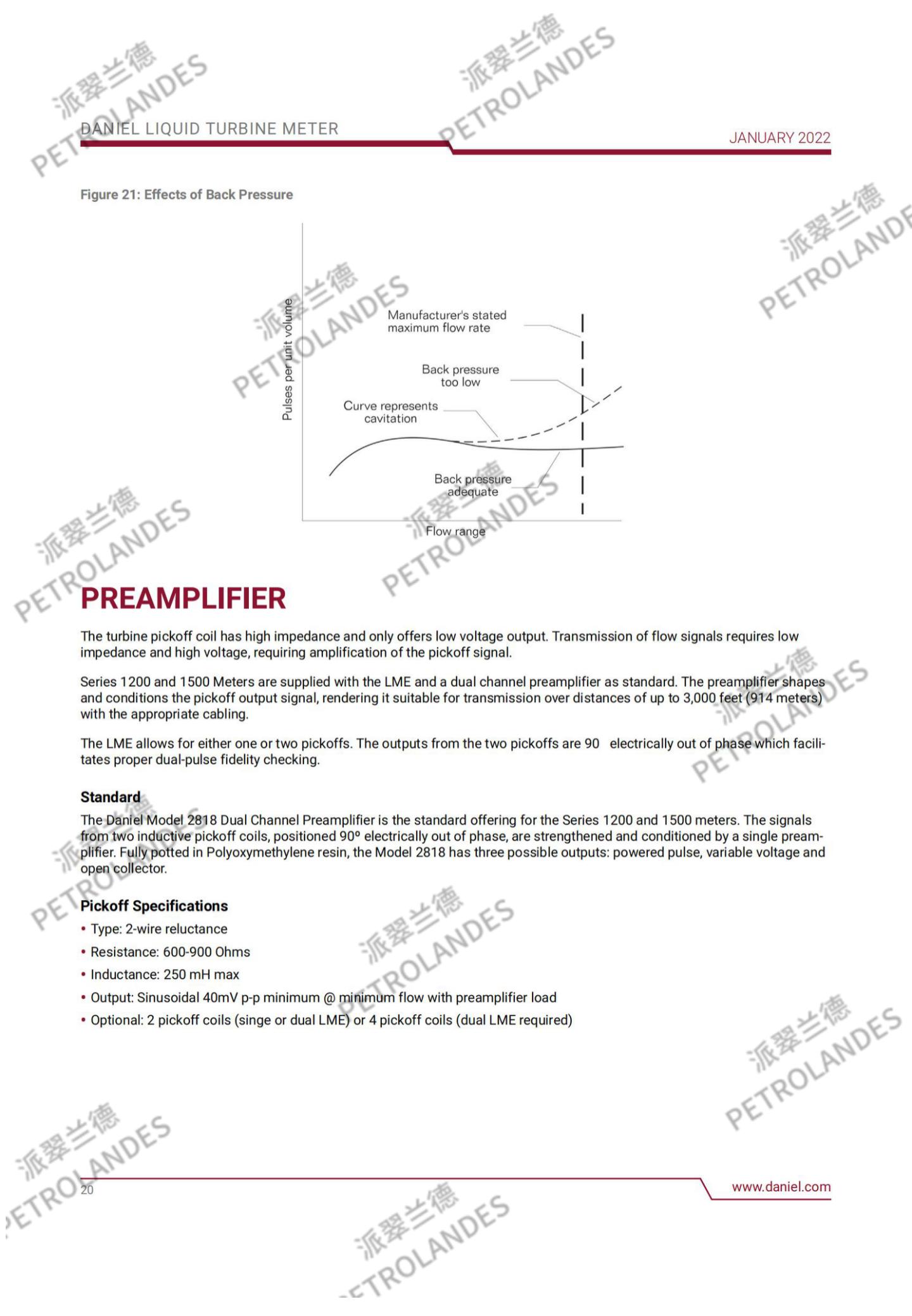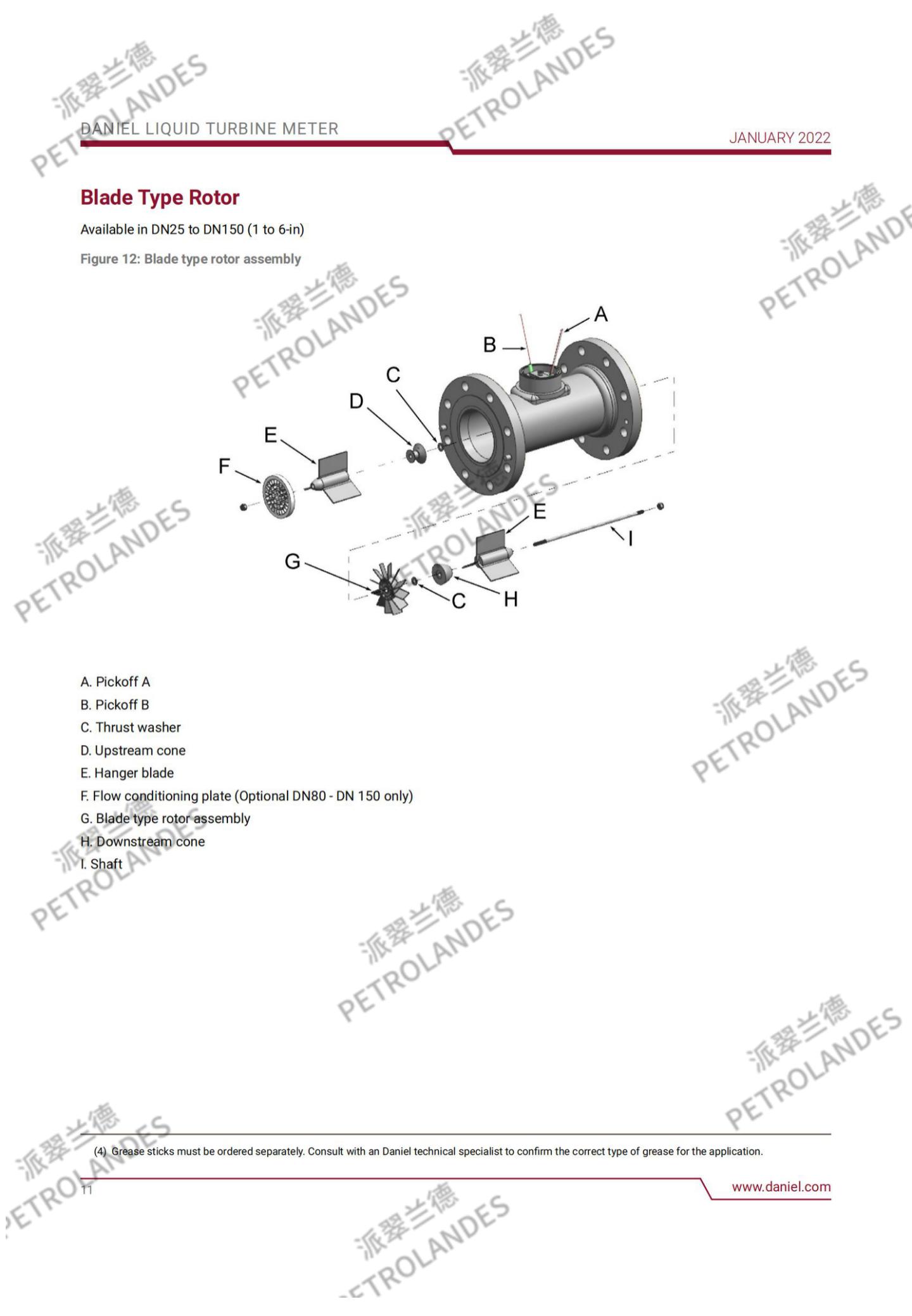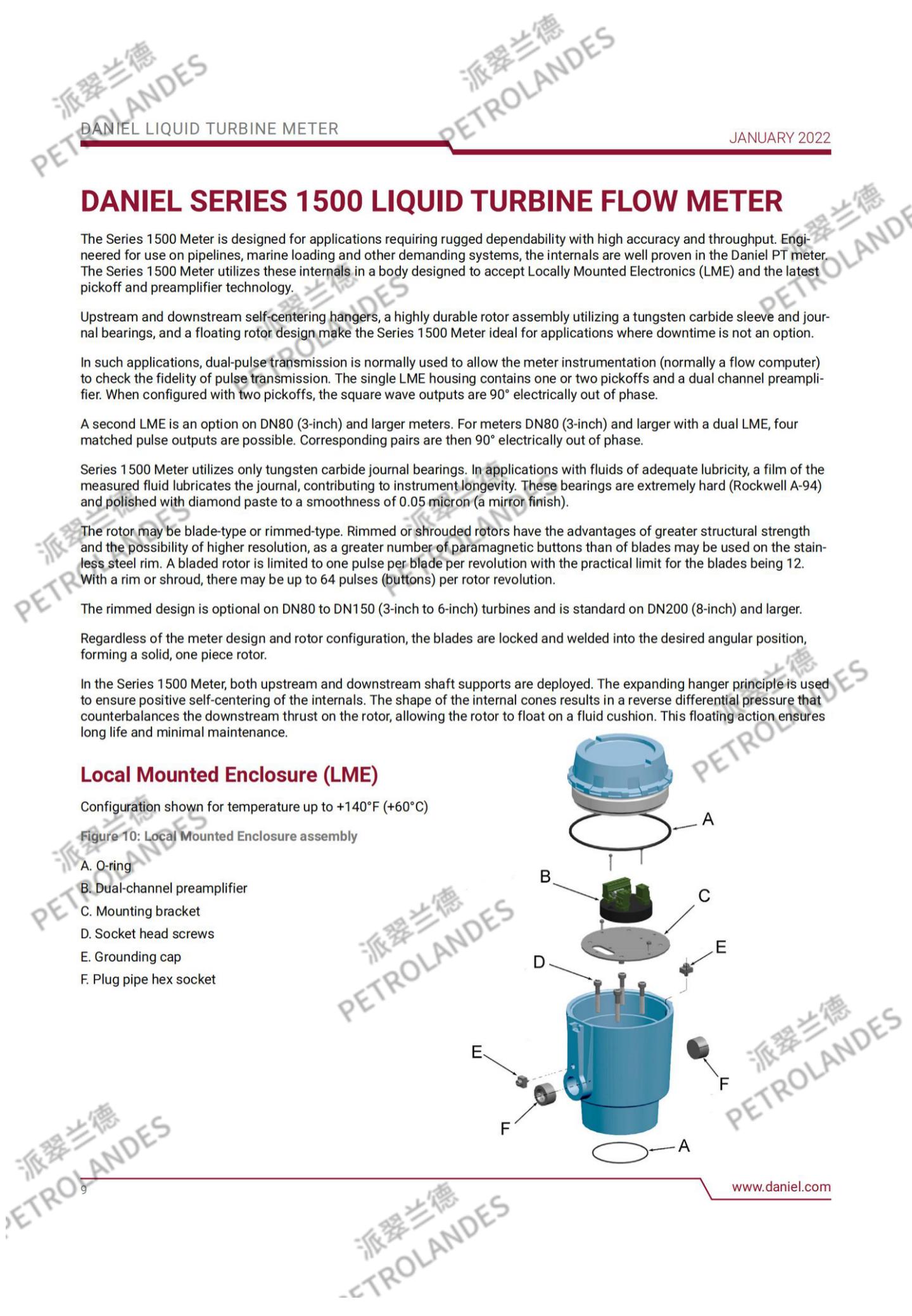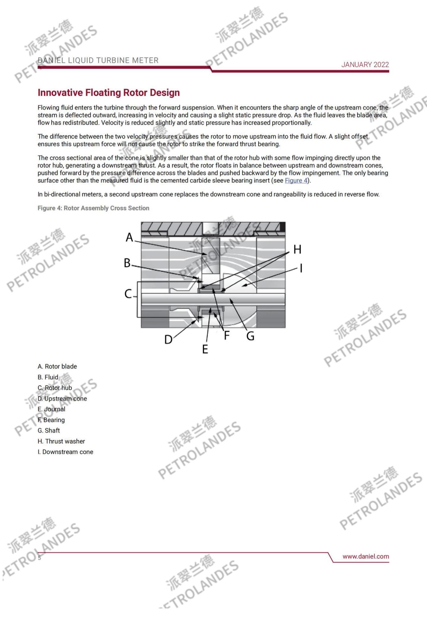 丹尼尔液体涡轮表背后的基本理论相对简单。流经流量计的流体撞击在涡轮叶片上,涡轮叶片可以沿涡轮壳体中心线的轴线自由旋转。