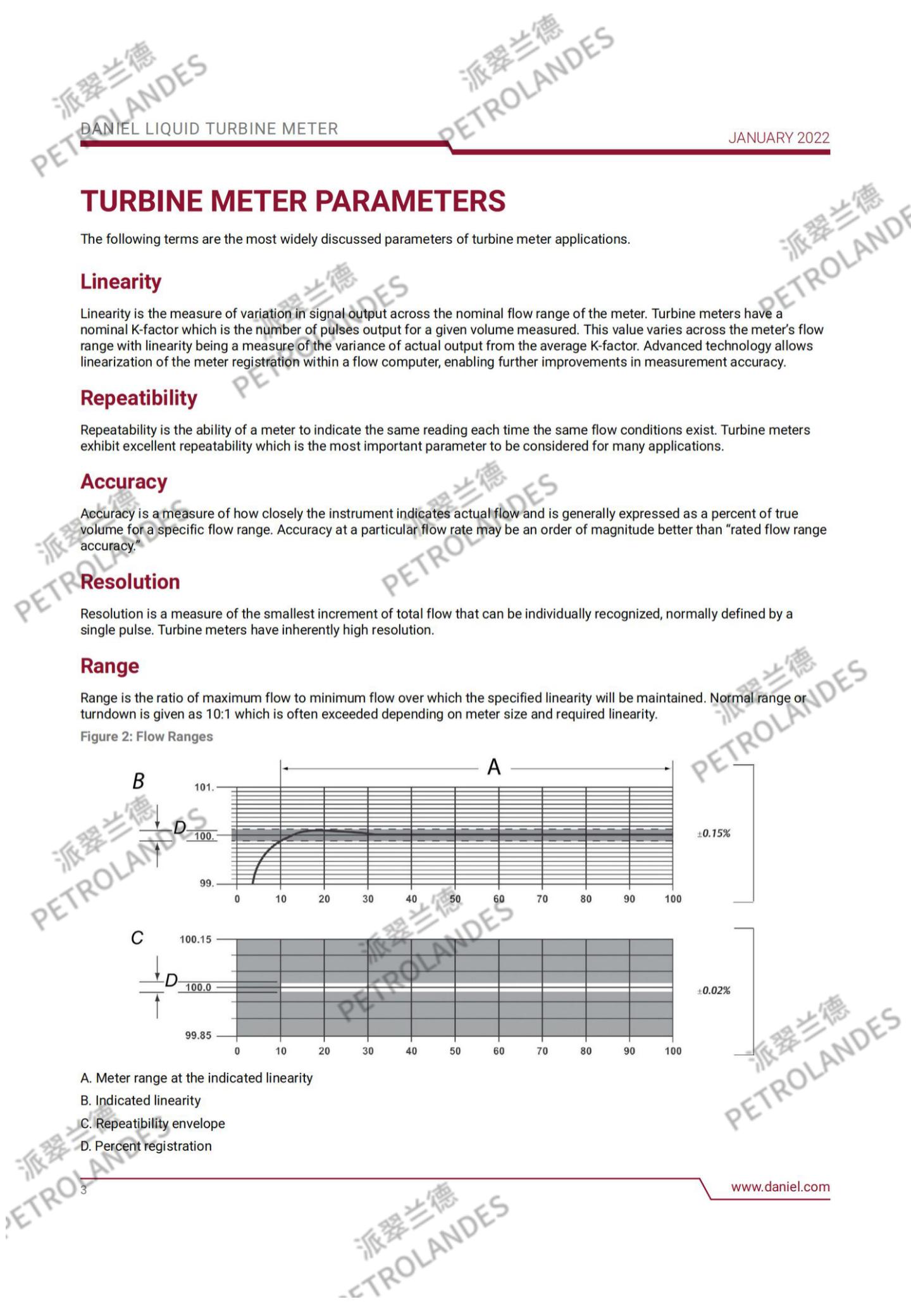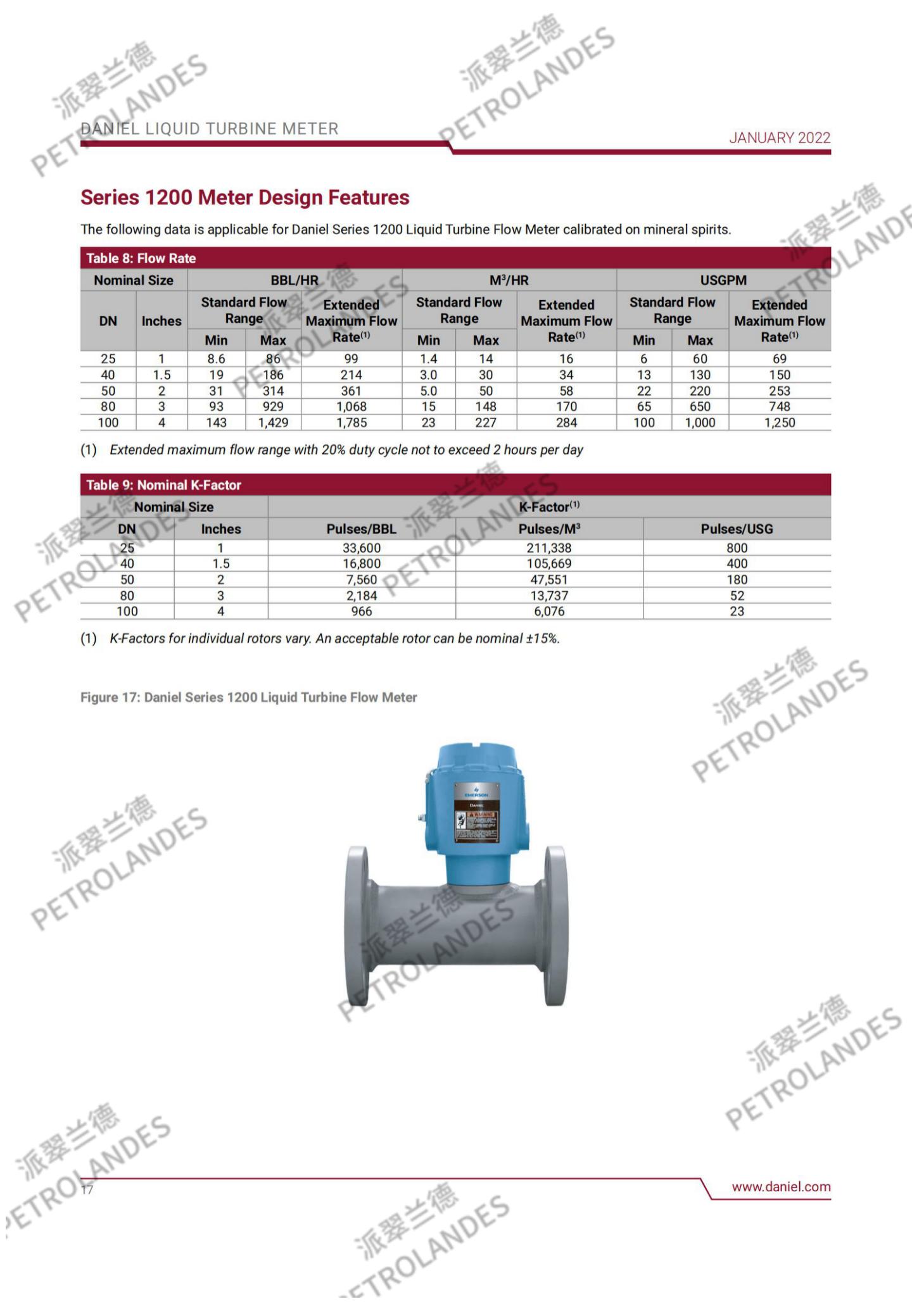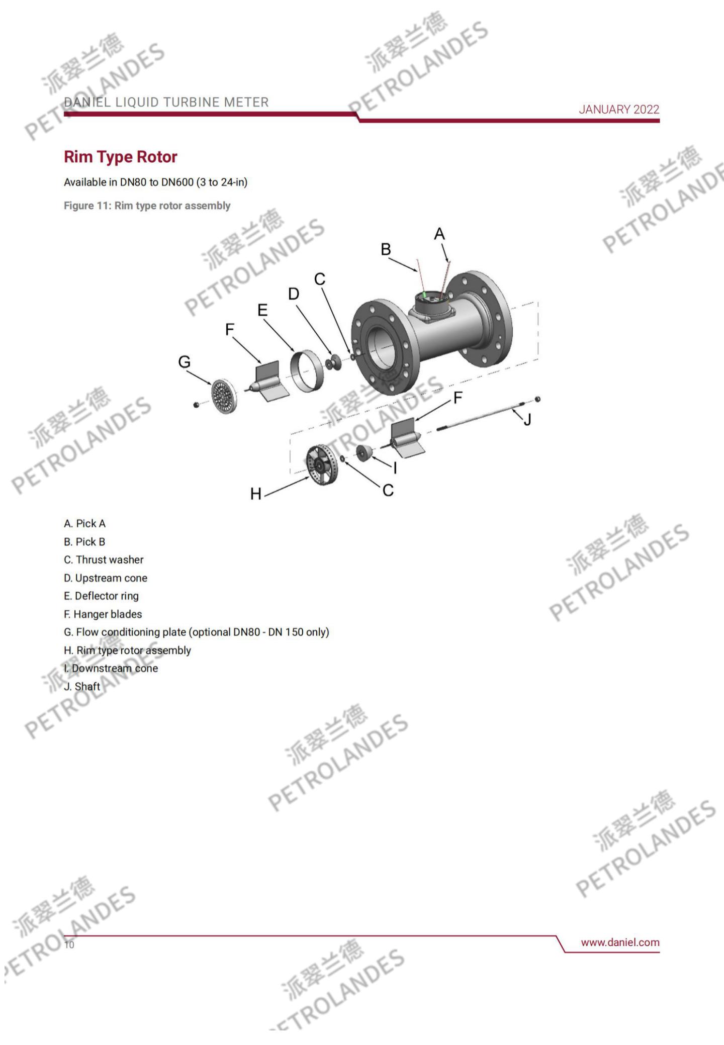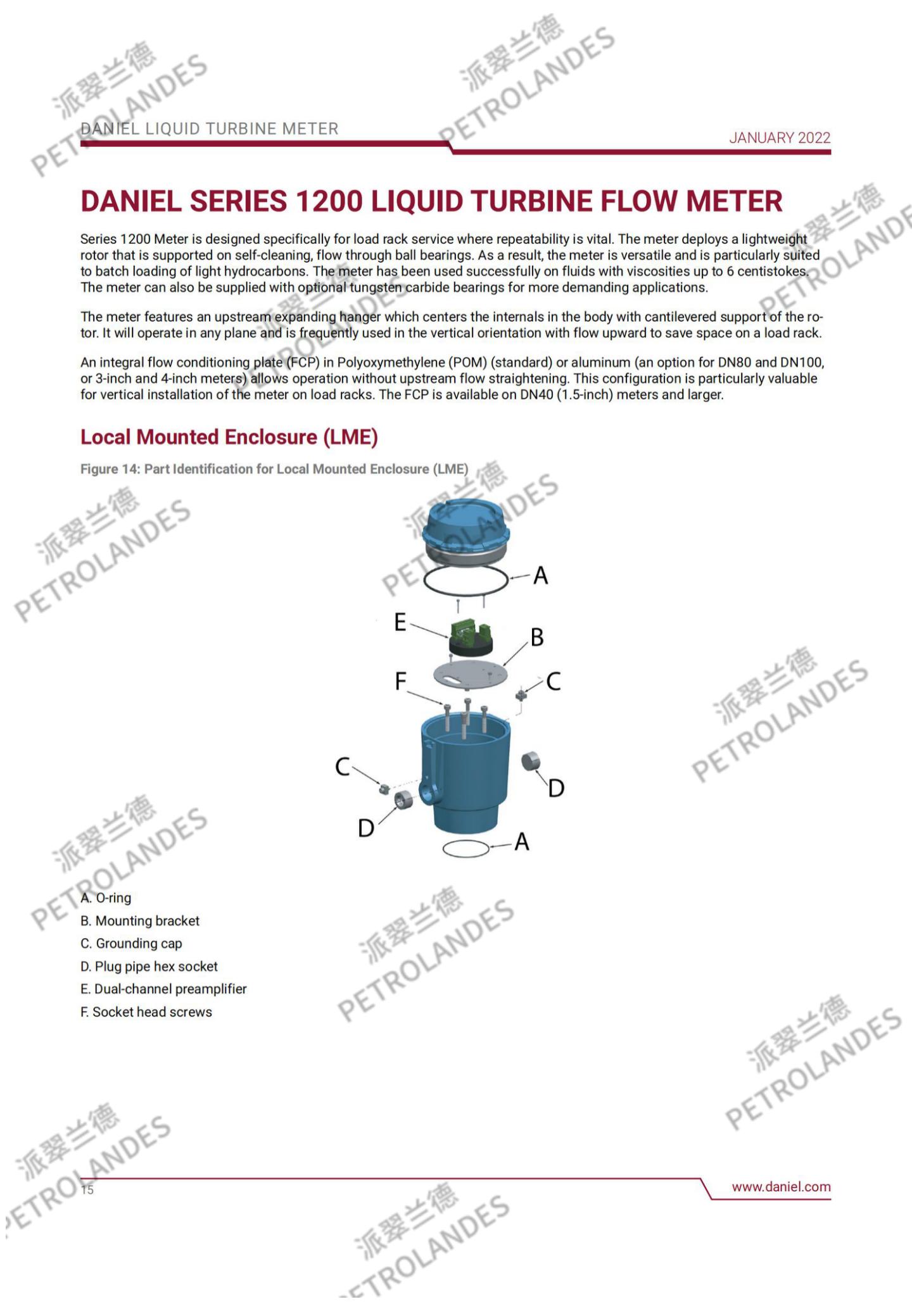 丹尼尔液体涡轮表背后的基本理论相对简单。流经流量计的流体撞击在涡轮叶片上,涡轮叶片可以沿涡轮壳体中心线的轴线自由旋转。